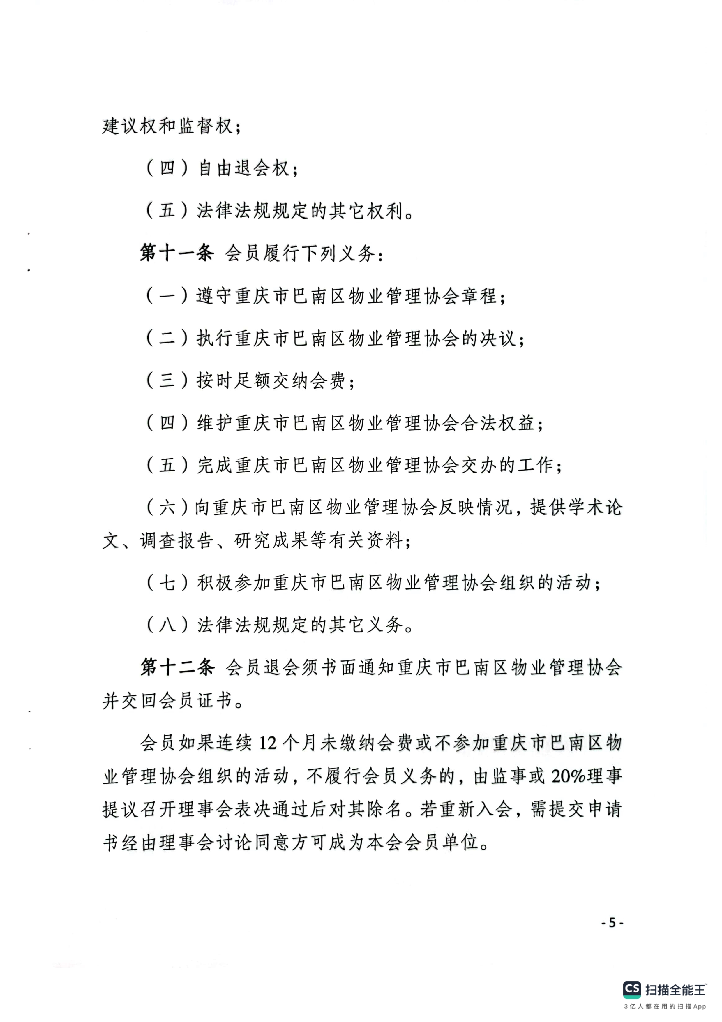 重庆市巴南区物业管理协会章程